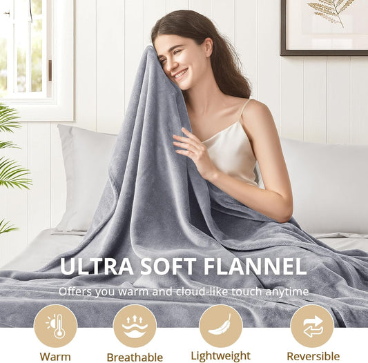 Fleece Throw Blanket for Couch - Grey Throw Blankets, Lightweight Fuzzy Cozy Soft Plush Warm Blankets - 50X60 Inches (Grey)