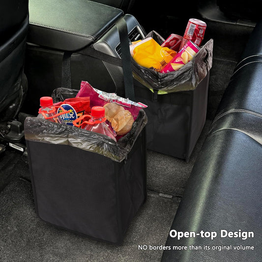 Foldable Car Trash Can - 3 Gallon Capacity, Water-Resistant and Leakproof Design, Car Organization (Black)