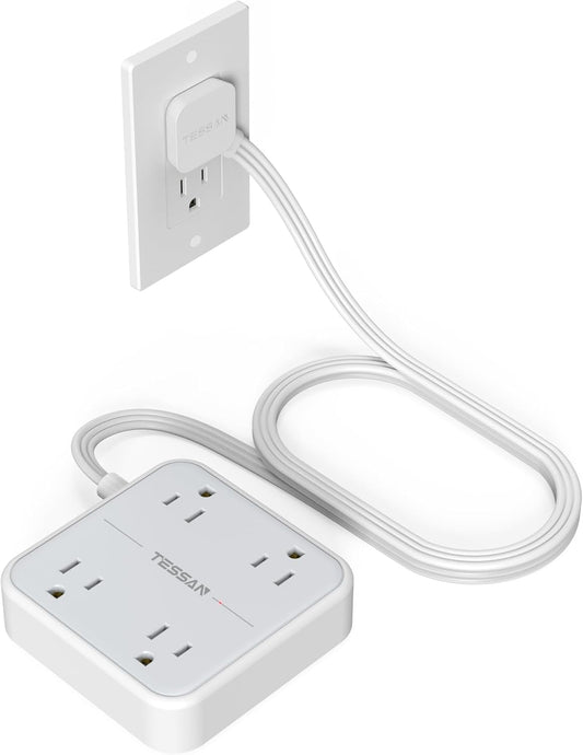 Flat Plug Power Strip with Surge Protection, 5-Foot Extension Cord, 4 Outlets for Home Office and Dorm Room, Gray