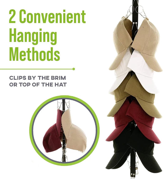 Hat Organizer Rack Closet Rod (Set of 2) - Versatile Storage Solution for Baseball Caps, Golf Caps, Beanies, and Sports Caps with 16 Clips