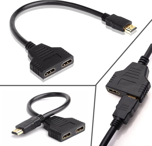 HDMI Splitter Adapter - 1080P Male to Dual Female 1x2 HDMI Splitter Cable for HDTV, LED, LCD Monitors, and Projectors - Supports Dual TV Output