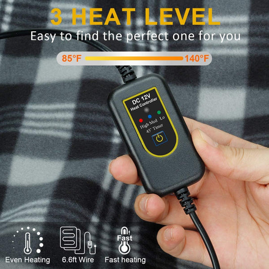 Heated Car Blanket 12V - High/Medium/Low Temp Control Travel Electric Blanket 59"X 44"