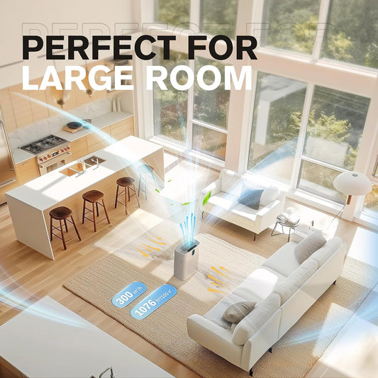 High-Efficiency Air Purifier for Large Rooms up to 1076 Sq Ft with PM 2.5 Display, True HEPA Filter, Dual Air Inlet, 24dB Noise Level, White