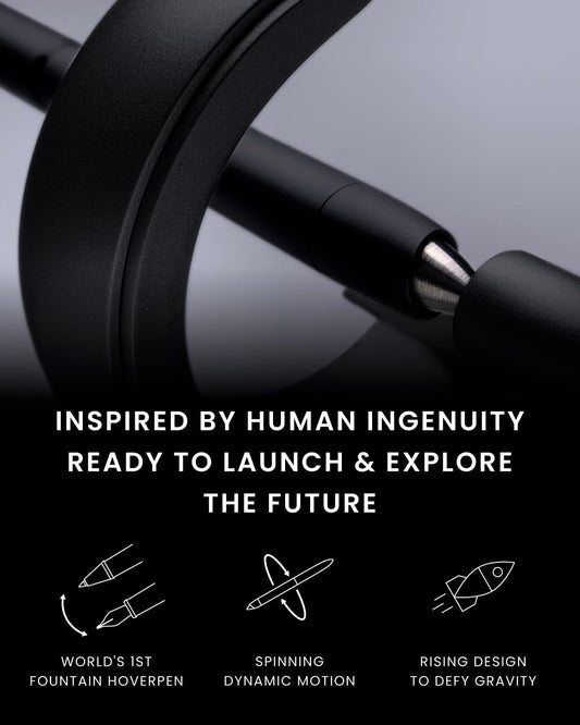Hoverpen Future Edition - Luxury Fountain and Rollerball Pen Gift Set, Fine Nib, Futuristic Design, Metal Construction, Executive Spinning Pen, Ideal Gifts for Men (Deep Black)