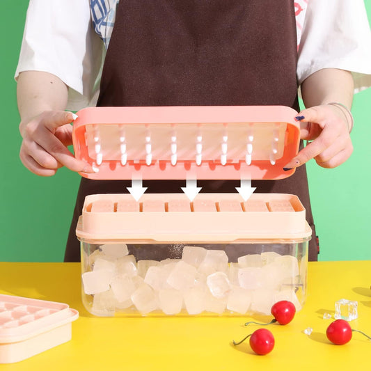 Ice Cube Trays - Lids and Storage Bin, Enhanced Easy Release Silicone - Plastic Design, Stackable, BPA-Free, Set of 2