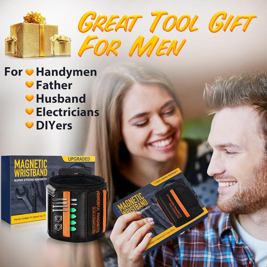 Magnetic Wristband Tool Holder for Men - Strong Magnet Wrist Tool Belt Set, Ideal Christmas Stocking Stuffer and Birthday Gift for Dads and Men