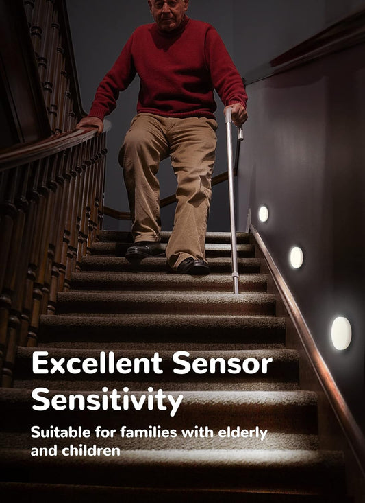 Motion Sensor Lights Indoor, 6 Packs under Cabinet Lighting Wireless Rechargeable, 12 LED Battery Operated Closet Lights, Magnetic Puck Night Lights for Kitchen Stair Wall, Warm/White