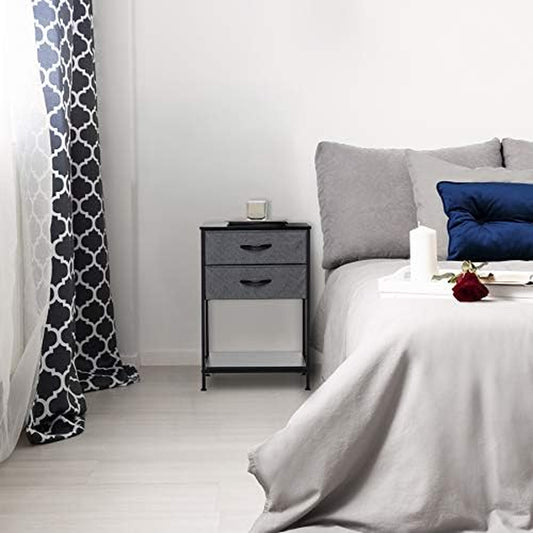 Night Stands for Bedrooms - Bedside Table with Shelf, End Table, Side Table - Modern 2 Drawer Storage Unit and 2 Drawer Dresser with Fabric Drawers - Perfect for Bedroom, Office, Closet, Dorm - Black