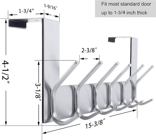 over the Door Hook Door Hanger:Over the Door Towel Rack with 6 Hooks for Hanging Coats,Door Coat Hanger Towel Hanger over Door Coat Rack for Towels,Clothes,Back of Bathroom,Silver
