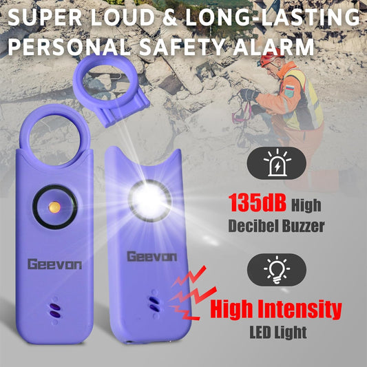Personal Safety Alarm Set - Women - 135DB Loud Siren with LED Strobe Light, Rechargeable (Purple)