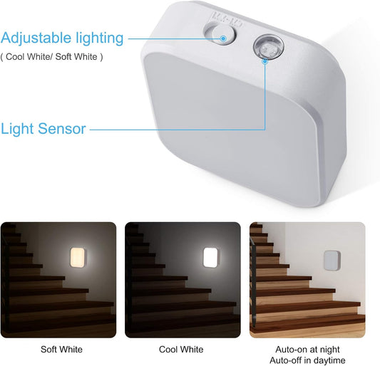 Plug-In LED Night Light Set, 4-Pack, Adjustable Soft, Cool White Lighting, Dusk to Dawn Sensor