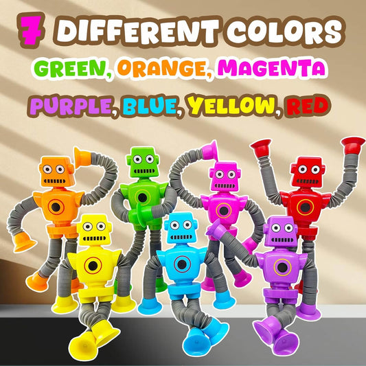 Pop Tubes Robot Fidget Toys 7 Pack of Colorful Telescopic Suction Cup Robotics-Ages 5+ Ideal Sensory Toys for Autism
