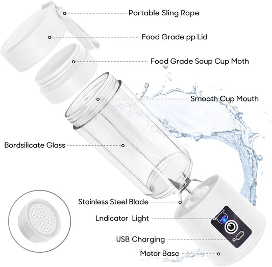 Portable USB Rechargeable Personal Blender with 3D Six-Blade Technology for Smoothies - White