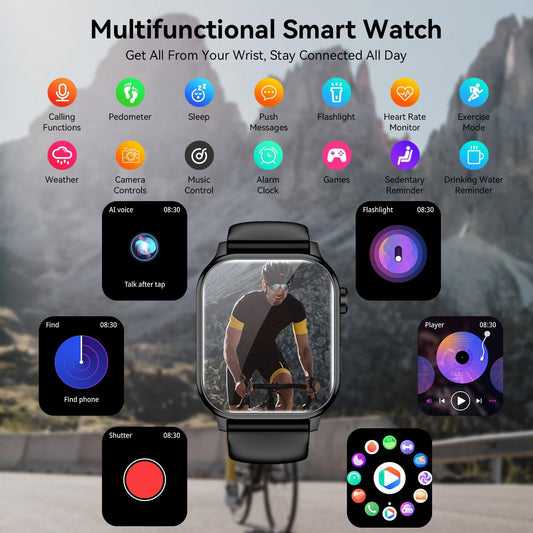 Premium Bluetooth Smart Watch for Men and Women - 1.85" HD Touch Screen Fitness Tracker with IP67 Waterproof Rating, Heart Rate and Sleep Monitoring, 100+ Sports Modes, Compatible with iOS and Android (Black)