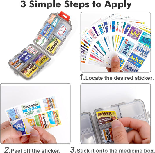 Portable Travel Pill Organizer with 260 Labels and 10 Compartments - Weekly Medication Container Case for Travel Essentials (Grey)