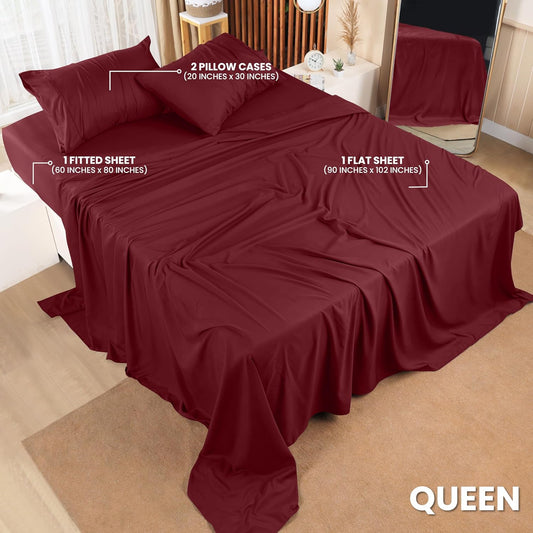 Queen Bed Sheet Set - 4-Piece Bedding Collection - Soft Brushed Microfiber - Shrinkage and Fade Resistant - Easy Care - Burgundy