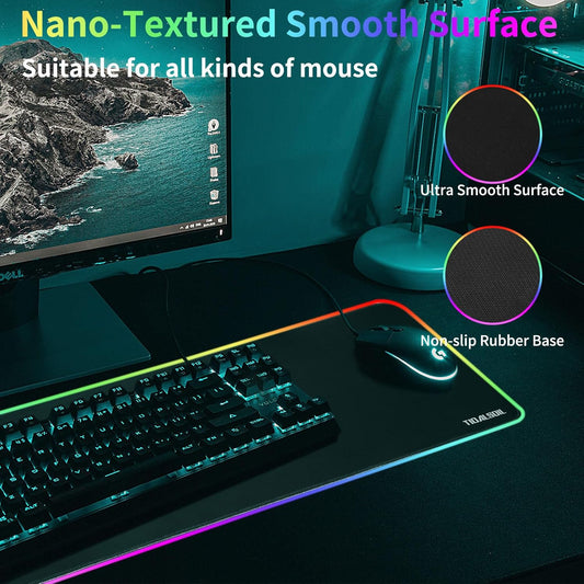 RGB Gaming Mouse Pad, Oversized Mouse Mat with 12 Light Modes, Non-Slip Rubber Base, Large Computer Keyboard Mouse Pad for PC Gaming, Office, 800 X 300 X 3 Mm, Black