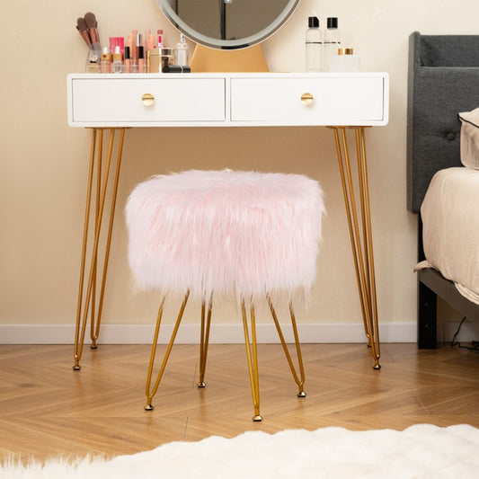 Round Faux Fur Upholstered Vanity Stool with Padded Seat