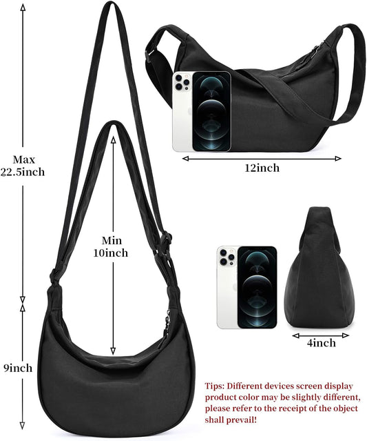 Trendy Mini Crescent Sling Crossbody Bag for Men and Women, Lightweight Nylon with Adjustable Strap and Dual Zippers