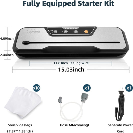 Vacuum Sealer Machine - 80Kpa High-Power Food Sealing System -Built-In Cutter, Sealing Bag, Hose, Meal Preservation, Sous Vide Cooking