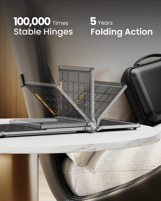 XKM01 Foldable Bluetooth Keyboard and Mouse Combo for Business and Travel, Dual Connectivity (2.4G + Bluetooth), Full-Size Portable Design for Laptops and Tablets (Space Gray)