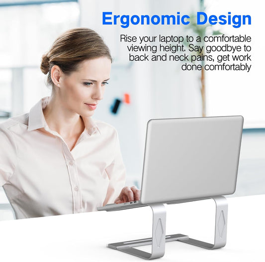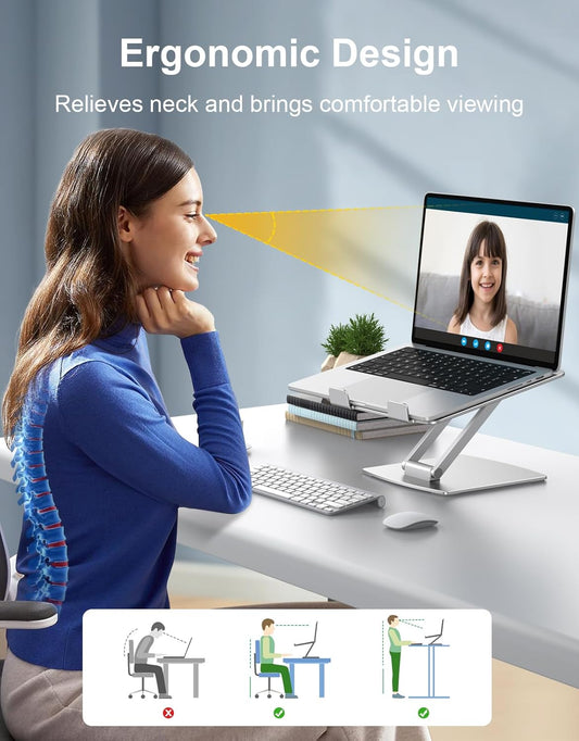 Adjustable Aluminum Laptop Stand for Desk - Ergonomic Riser for Improved Posture, Ventilated Cooling, and Portability