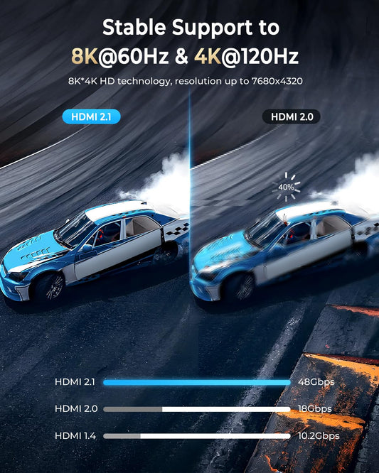8K HDMI 2.1 Ultra High Speed Cable - 48Gbps, 8K@60Hz, 4K@120Hz, Compatible with HDTV, DTS:X, Dynamic HDR, Dolby Atmos
