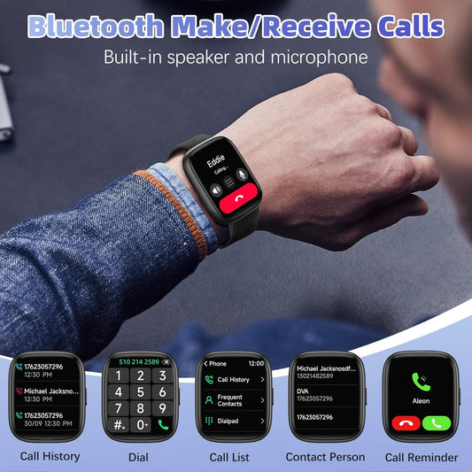 Smartwatch with Call Functionality, Built-in Alexa, 1.83" HD Touchscreen, Fitness Tracking, Heart Rate, SpO2, Sleep Monitoring, IP68 Waterproof, 100 Sports Modes