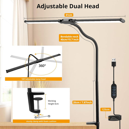 Adjustable LED Desk Lamp with Clamp and 30 Lighting Modes, Eye-Caring Architect Design, Dual Head, Flexible Gooseneck, 14-Inch Height