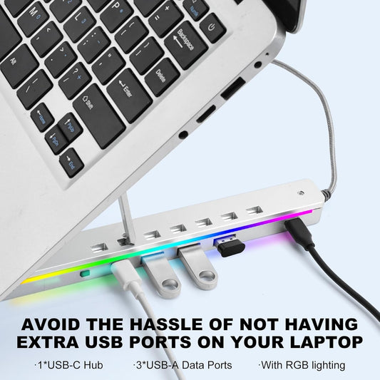 Laptop Stand with Usb、Type C and RGB Lights, Aluminum Adjustable Foldable Laptop Stand for Desk, Ergonomic Portable Laptop Riser Holder