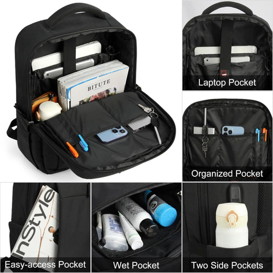 15.6-Inch Anti-Theft Laptop Backpack with USB Charging Port - Large Waterproof Travel Backpack for Work and School, Black