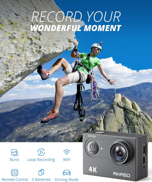 Ultra HD 4K30FPS Action Camera with 170-Degree Wide Angle and 98FT Waterproof Capability