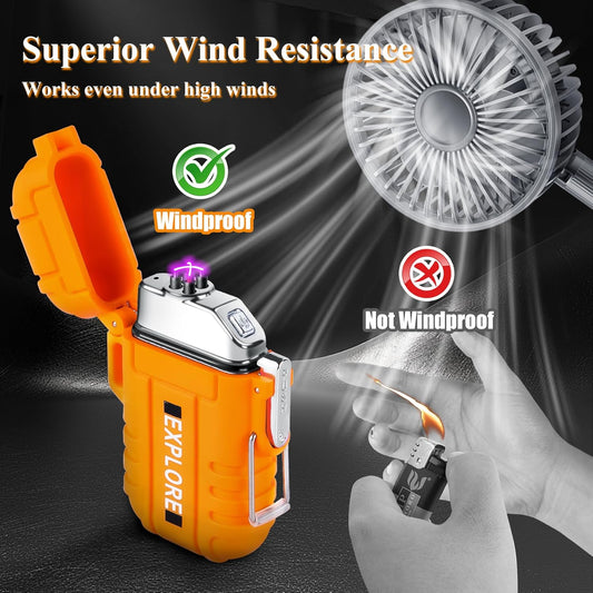 Plasma Arc Lighter with Emergency Whistle - Waterproof, Windproof, Rechargeable USB Electric Lighter for Hiking, Camping, and Tactical Adventures (Orange)