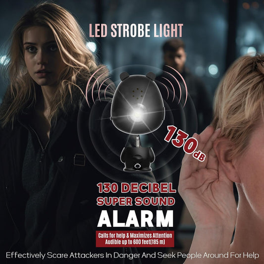 130Db Personal Safety Alarm Strobe Light. Loud Sound Keychain Siren with Carabiner for Women, School Children, Night Runners, Hiking. Bear Alarm Deterrent. SOS Emergency Self Defense Alerts. Black