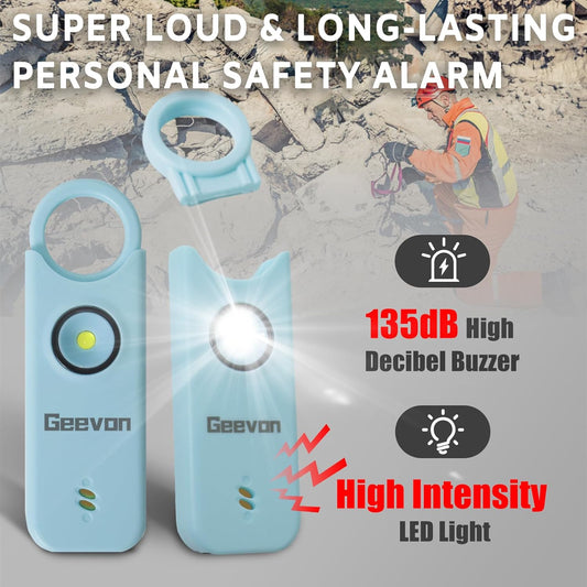 Personal Safety Alarm Set - Women - 135DB Loud Siren with LED Strobe Light, Rechargeable (Mint)