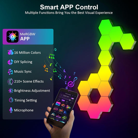 Hexagon LED Wall Light Panels: 12-Piece Smart Touch Sync Music Hex Lights for Gaming and Bedroom Decor