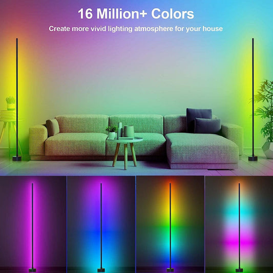 Smart RGB LED Corner Floor Lamp - App and Remote Control - 16 Million Colors, 68+ Scenes, Music Sync, Timer Setting