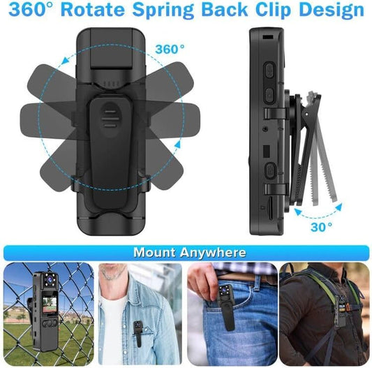 Professional Body Camera with Audio and Video Recording, 6-Hour HD 1296P, 180° Rotating Lens, Night Vision, 64GB Storage, Compatible with iPhone, Android, Mac, and Windows PC