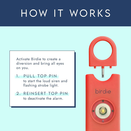 Personal Safety Alarm - Loud Siren, Strobe Light, Solid Brass Key Chain in a Variety of Colors (Coral)