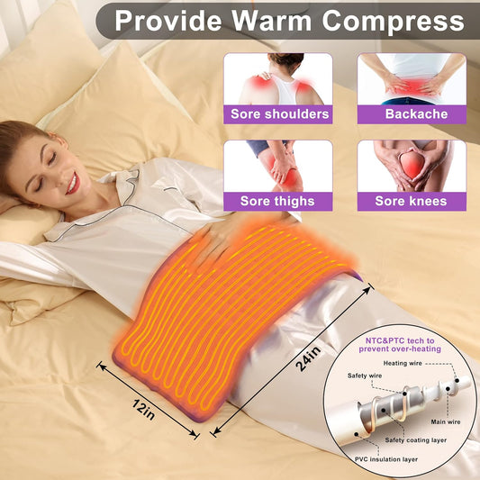 Electric Heating Pad with Moist and Dry Heat Options, Adjustable Temperature and Timer Settings