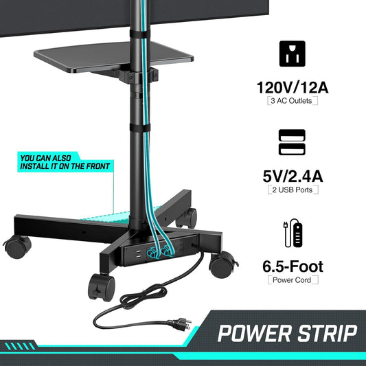 Mobile TV Cart with Power Outlet for 32-85 Inch Flat and Curved Screens Up to 132 lbs, Height Adjustable Rolling Stand with AV Shelf, Max VESA 600x400mm