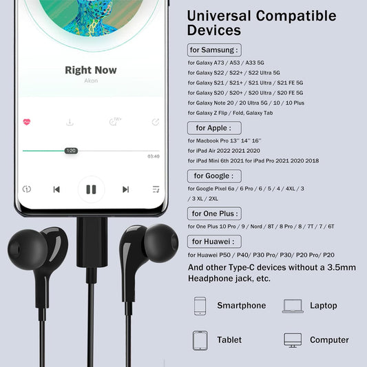 USB-C Headphones In-Ear Wired Earbuds with Microphone