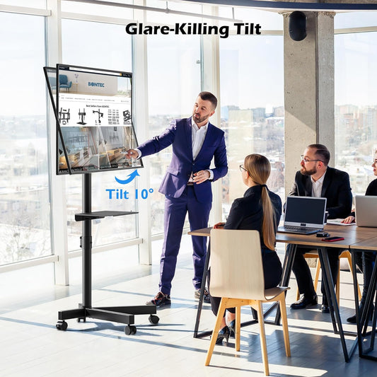 Mobile TV Stand with Adjustable Tilt, Rolling Cart and Media Shelf for 23-60” Flat & Curved TVs, 55 lbs, Max VESA 400x400 mm