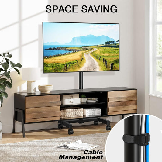 Mobile TV Stand with Wheels for 13-50 Inch LED and LCD Screens, Adjustable Tilting and Rotating Mount, Height-Adjustable Rolling Cart