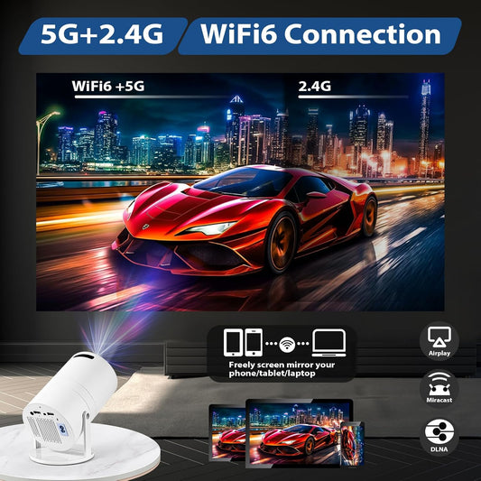 Mini Projector with WiFi 6 and Bluetooth 5.0, Featuring Android 11 OS, Automatic Keystone Correction, 180 Viewing Angle, 130-Inch Display