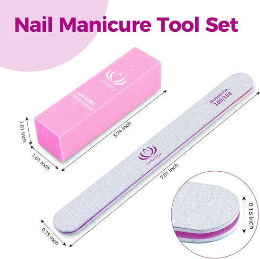 Professional 16-Pack Nail Files and Buffers Kit - Includes 10 Double-Sided 100/180 Grit Nail Files and 6 Four-Sided 120 Grit Nail Buffer Blocks for Acrylic and Dip Nails at Home or Salon