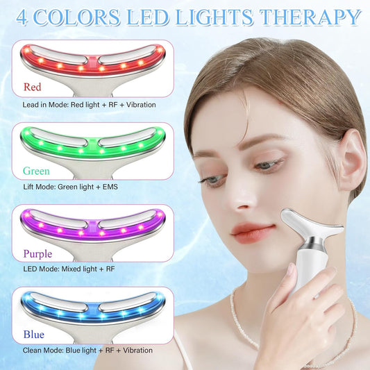 4-in-1 Red Light Therapy Device for Face and Neck with Multi-Color LED for Skin Rejuvenation and Massage