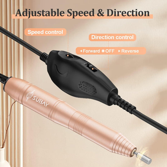 Portable Electric Nail Drill Machine with 11 Nail Drill Bits and 26 Sanding Bands for Acrylic, Gel, and Dip Powder Nails - Ideal for Salon and Home Use, Gold