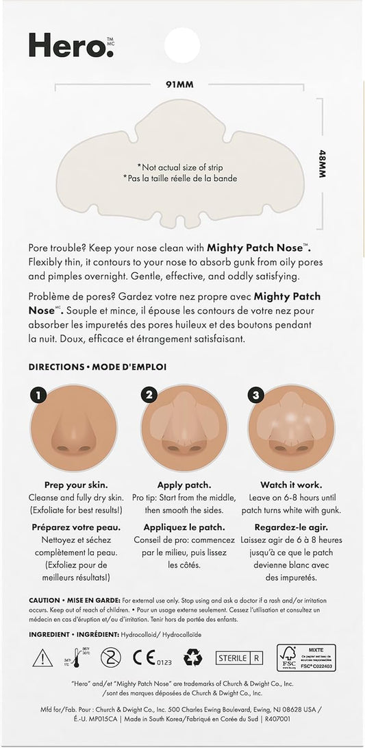 Mighty Patch Nose from Cosmetics - Hydrocolloid Pimple Patch for Nose, Soak up Oil, Pimple Gunk While You Sleep (10 Count)