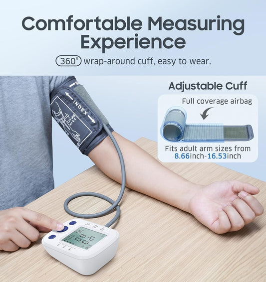 Automatic Blood Pressure Monitor for Home Use with 2x99 Memory, LCD Display, and Large Upper Arm Cuff (22-42 cm)